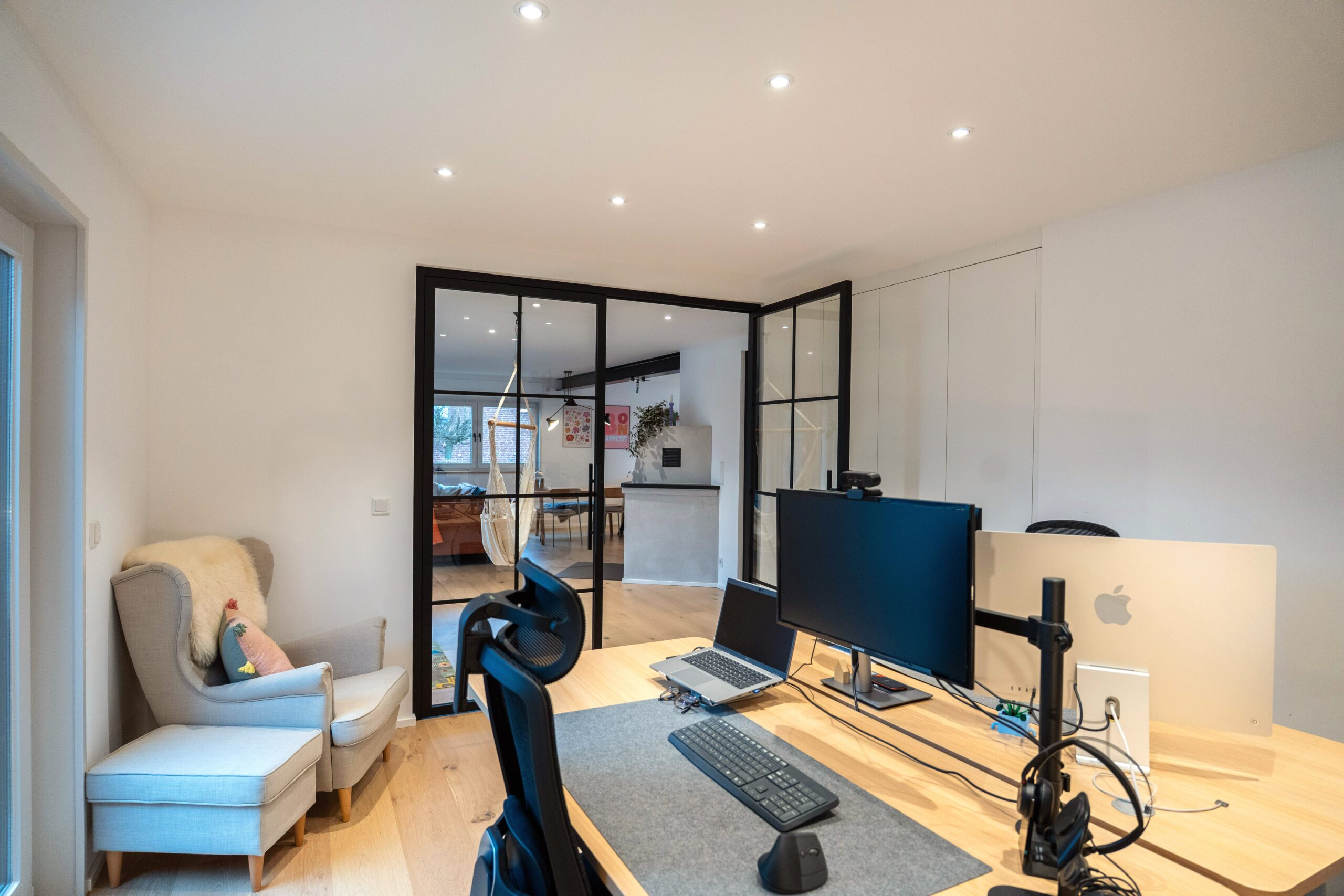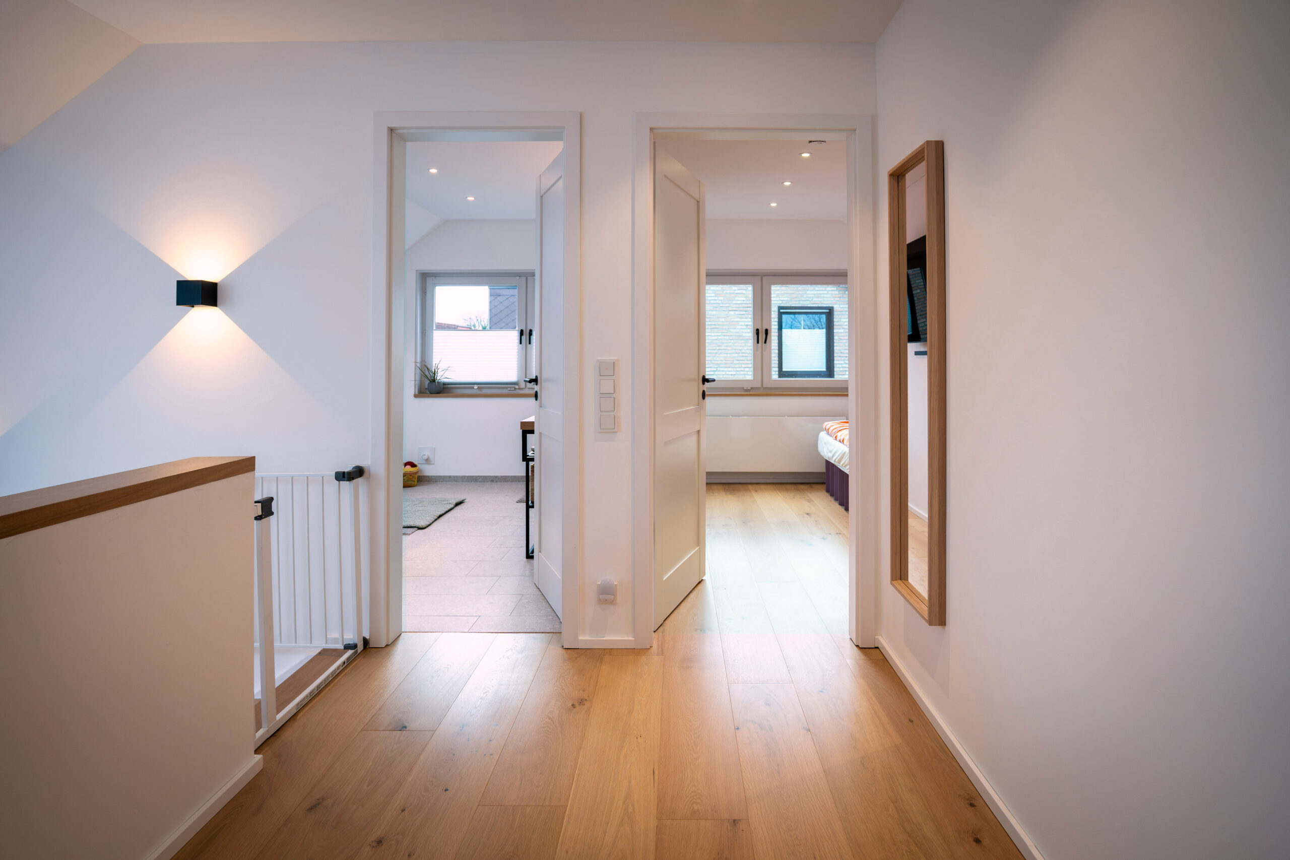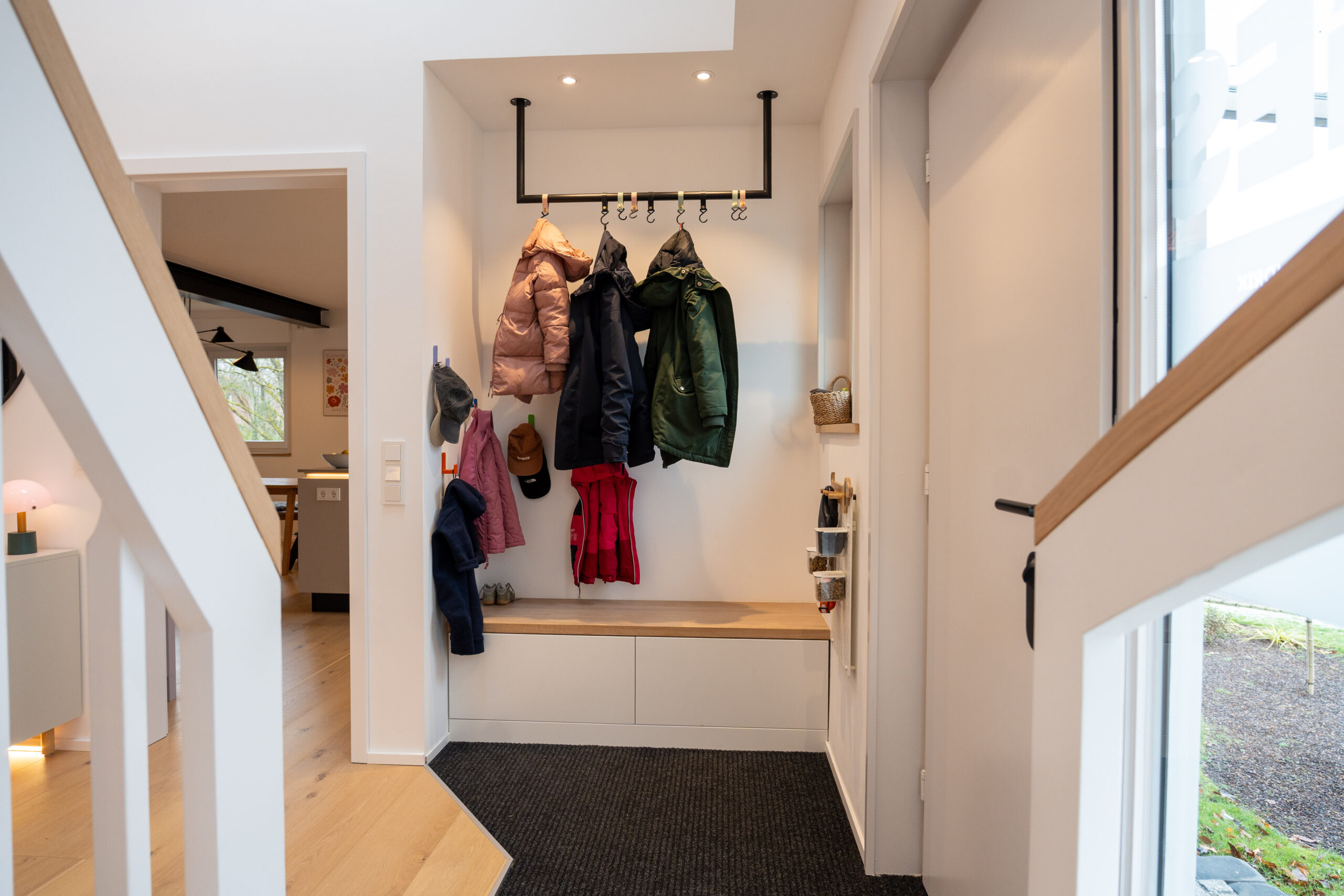 Wenn die ältere Generation ein gut gepflegtes Einfamilienhaus an die jüngere Generation übergibt, dann … muss alles neu. Zumindest wollte dies die junge Familie bei dem in Holzrahmenbauweise errichtetem Gebäude aus den 80er Jahren. Die Neugestaltung der Böden und der Treppe mit modernen Farben und Materialien und der neu angelegte großzügige Luftraum im Eingangsbereich sorgen nun für eine Wohlfühlatmosphäre direkt beim Betreten des Hauses. Beide Bäder wurden vollständig erneuert und der vorhandene Kaminofen dem neuen Look angepasst. Im EG wurde die Aufteilung der Räume insgesamt offener für das gelebte Familienkonzept konzipiert und umgebaut. Im Ergebnis ist genau das entstanden, was von den Bauherren gewünscht war. Ihr eigenes „neues“ Heim.